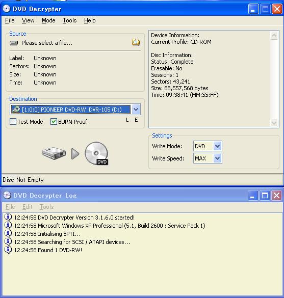 - DVD Decrypter ( http://www.dvddecrypter.com/ ) を利用してDVDのリッピングを行う
