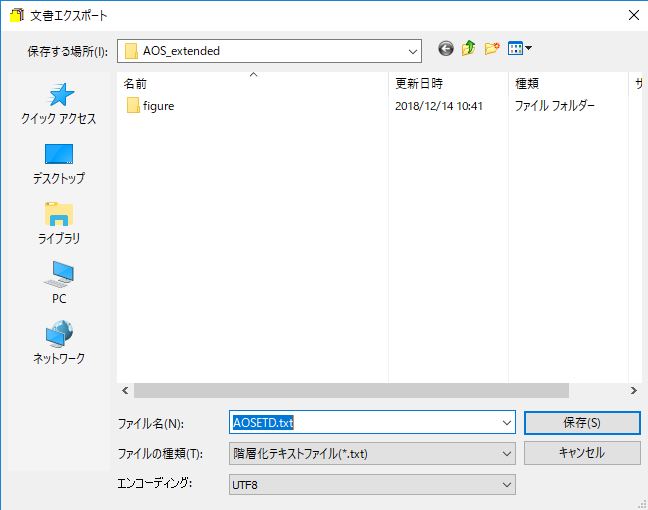 - ファイルの種類 = 階層化テキスト(*.txt) を指定