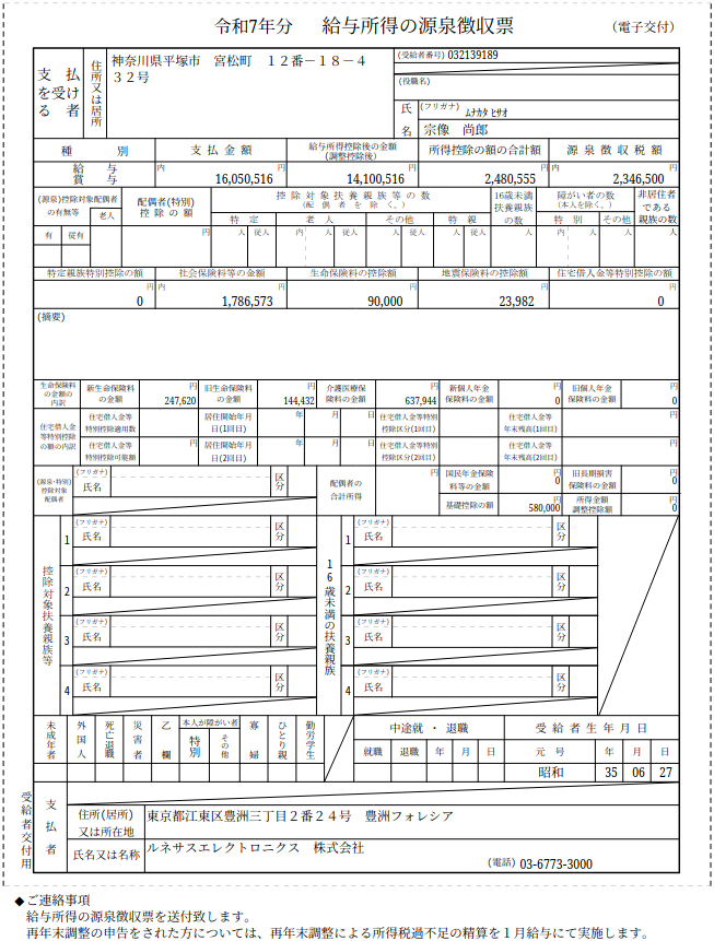- 保険者名称 = ルネサス康保険組合