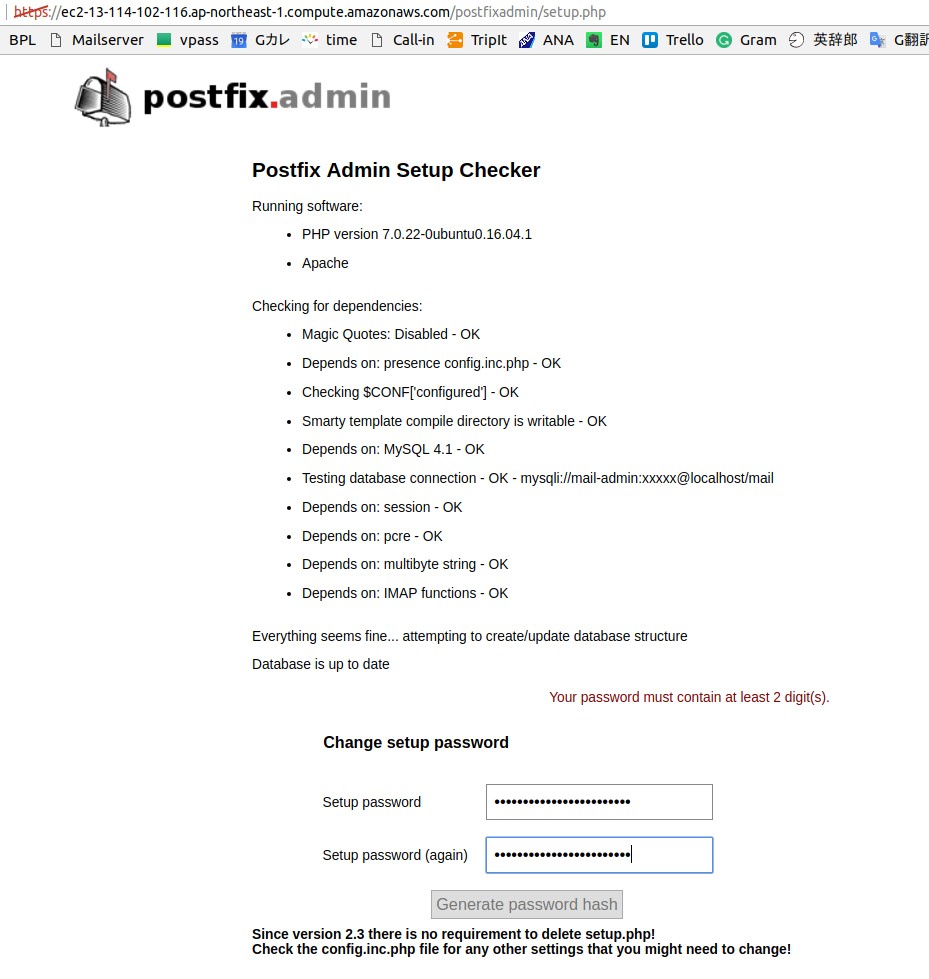 −− postfixadmin setup password = admin7785