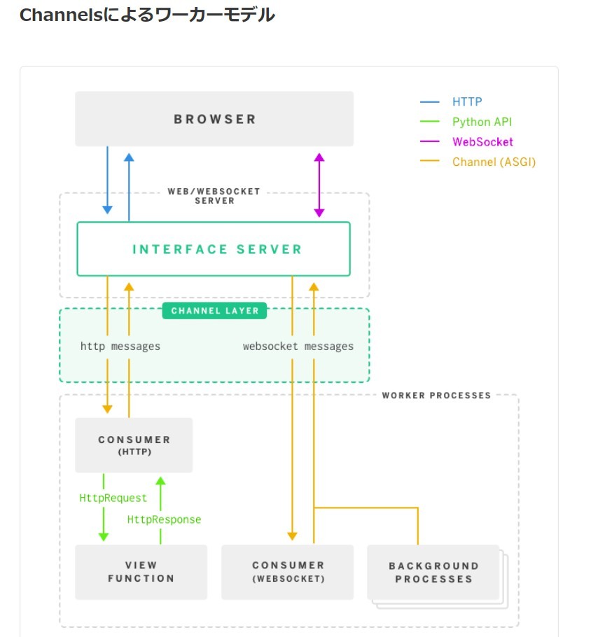 - setting.py に ASGI (=Asynchronous Server Gateway Interface) の起点を登録する。