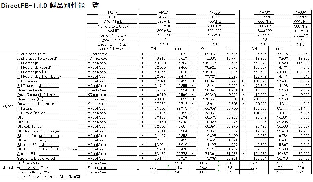 The DirectFB example suites include benchmark 'df_dok'. We have ran this benchmark on the following platform: