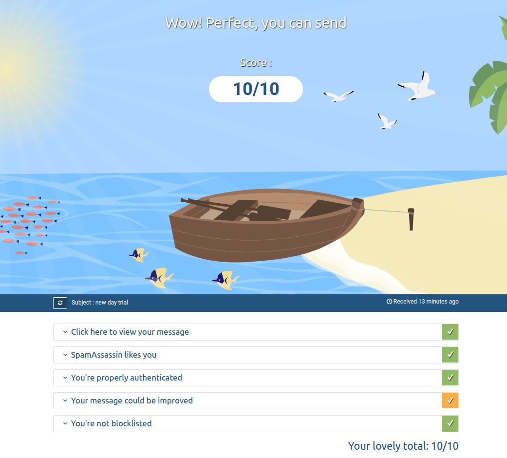 - メールテスター で確認したところスコアは 5.7/10 となった