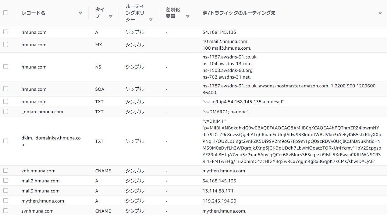 - SPF/DKIM は AWS Route53 のドメイン情報として登録していた