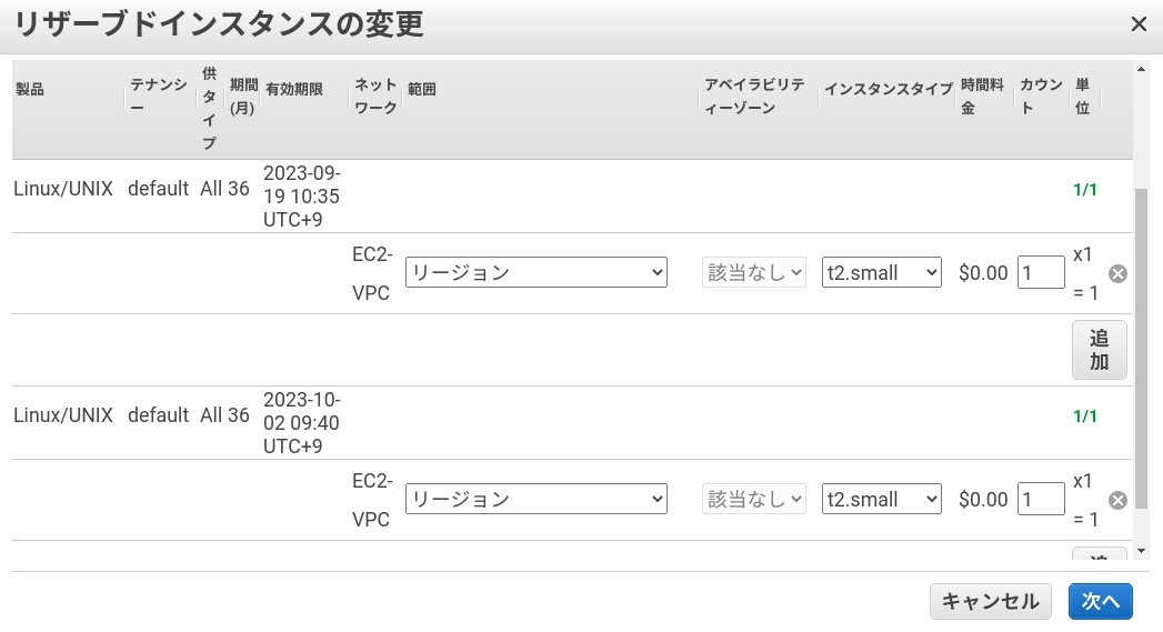 リザーブドインスタンスのダウングレード購入†