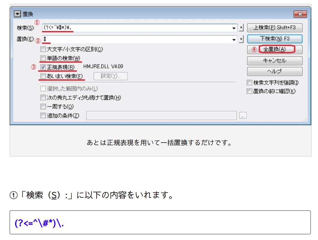 - 更に秀丸の置換機能でドットを#に変換すると Markdown 形式に簡易的に変換可能